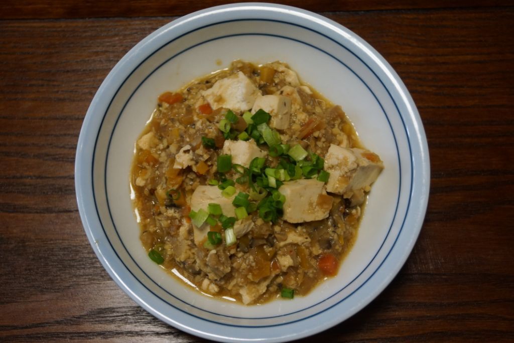 味噌・しょうゆ・だし汁・片栗粉・ハチミツを入れて蓋をして弱火で煮る。煮えたら豆腐を加え混ぜ合わせ、水で溶いた片栗粉でとろみをつけ、仕上げにごま油をたらす。