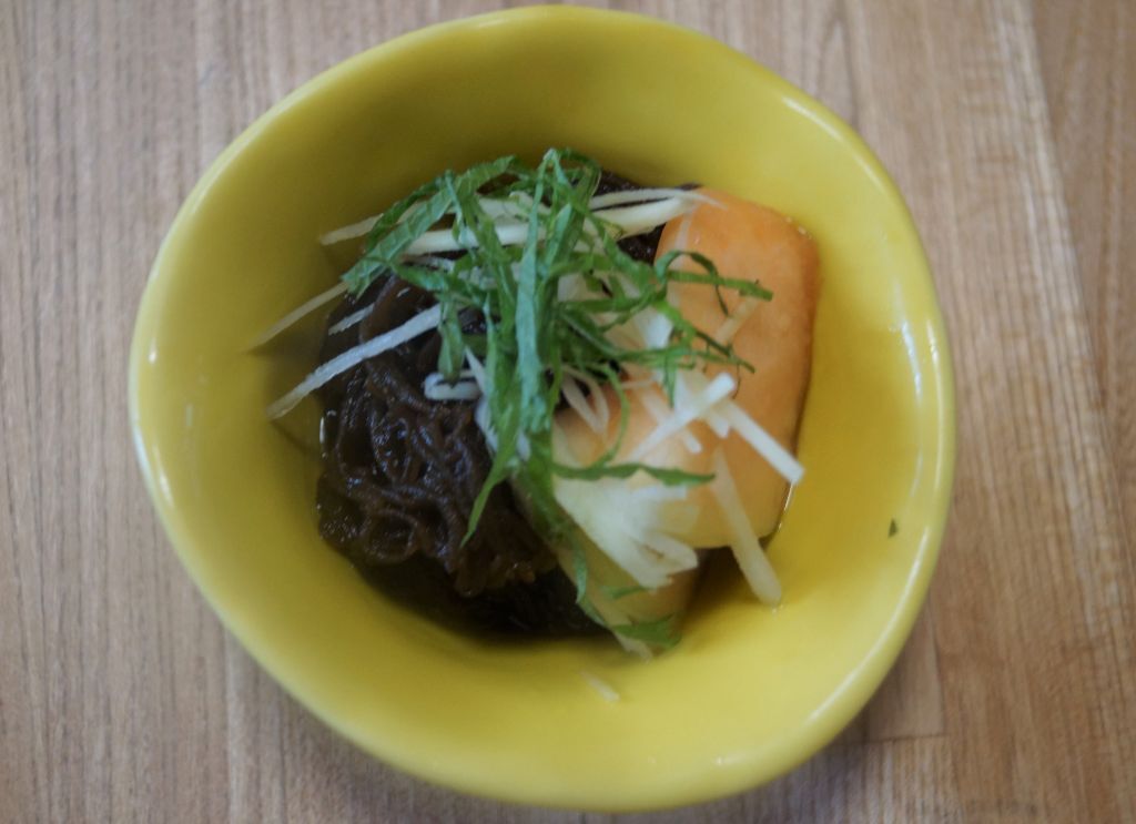 Homeレシピ紹介Yui Clinic 献立モズク酢 Categories: Yui Clinic 献立 モズク酢 当クリニックからレシピ紹介 Posted on 2019.7.30 by ゆいクリニック (沖縄市の産婦人科) Tags: ヴィーガン ベジタリアン もずく ローフード 青じそ モズク酢 材料 (5人分) もずく 250g 生姜 5g 青じそ 15g 調味料 しょうゆ 5g 酢 20g 昆布だし 25g 1調理手順 もずくは良く洗い、水気をきる。生姜はすりおろし、青じそは千切りにする。 2調理手順 しょうゆ・酢・昆布だしを合わせ三杯酢を作る。 3調理手順 器にもずくを入れ、青じそ・生姜をのせ、②をかけたら出来上がり。 ★今回はメロンの酢漬けも添えてます。