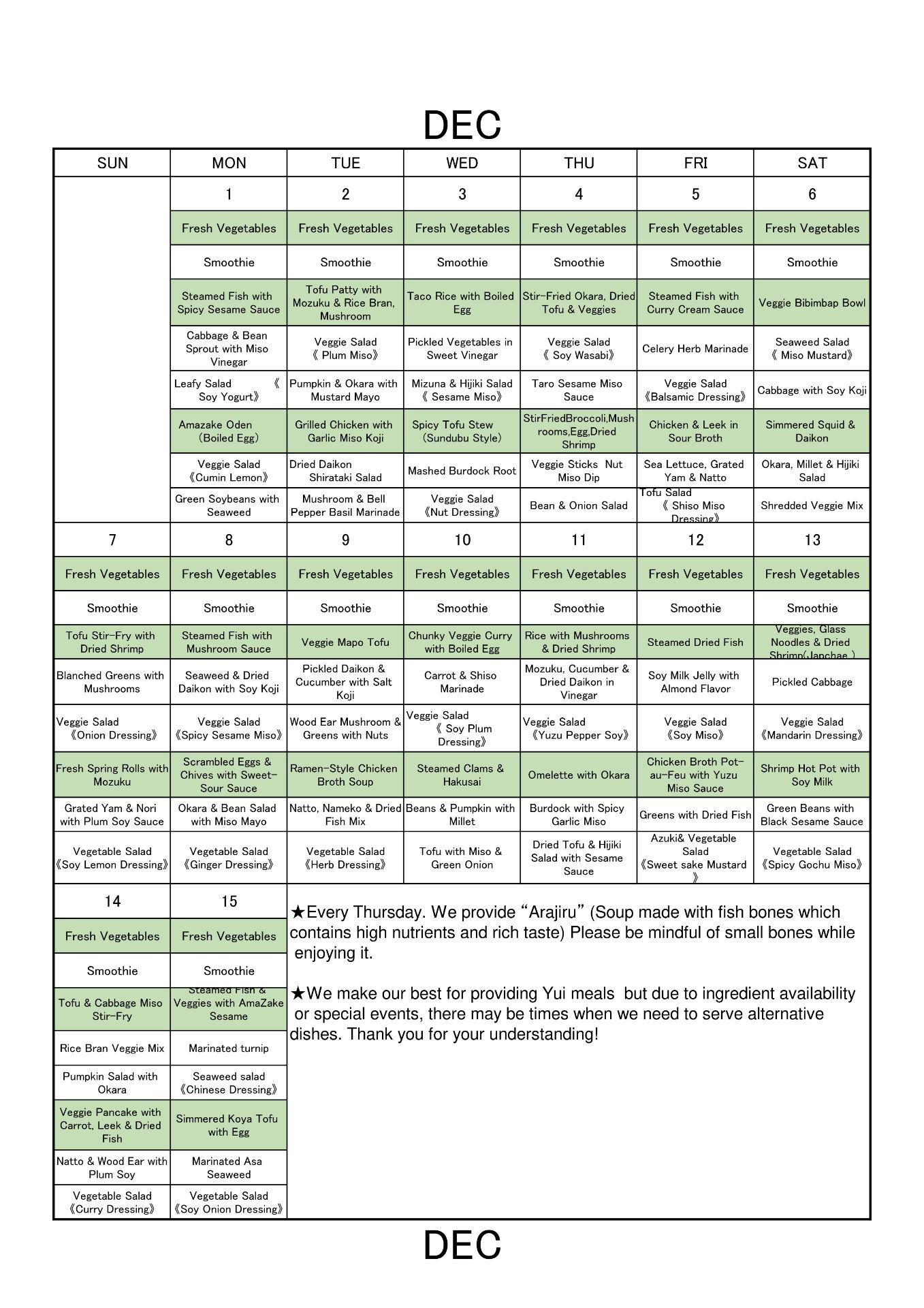HomeEnglish PageInformationfoodYui Clinic Menu in December 2025 Categories: food Yui Clinic Menu in December 2025 Information Posted on 2025.11.302025.11.25 by Yui Clinic (Okinawa, Japan) Tags: casein free gluten free menu non-sugar organic recipe vegitarian on Sunday, we have vegetarian menu.