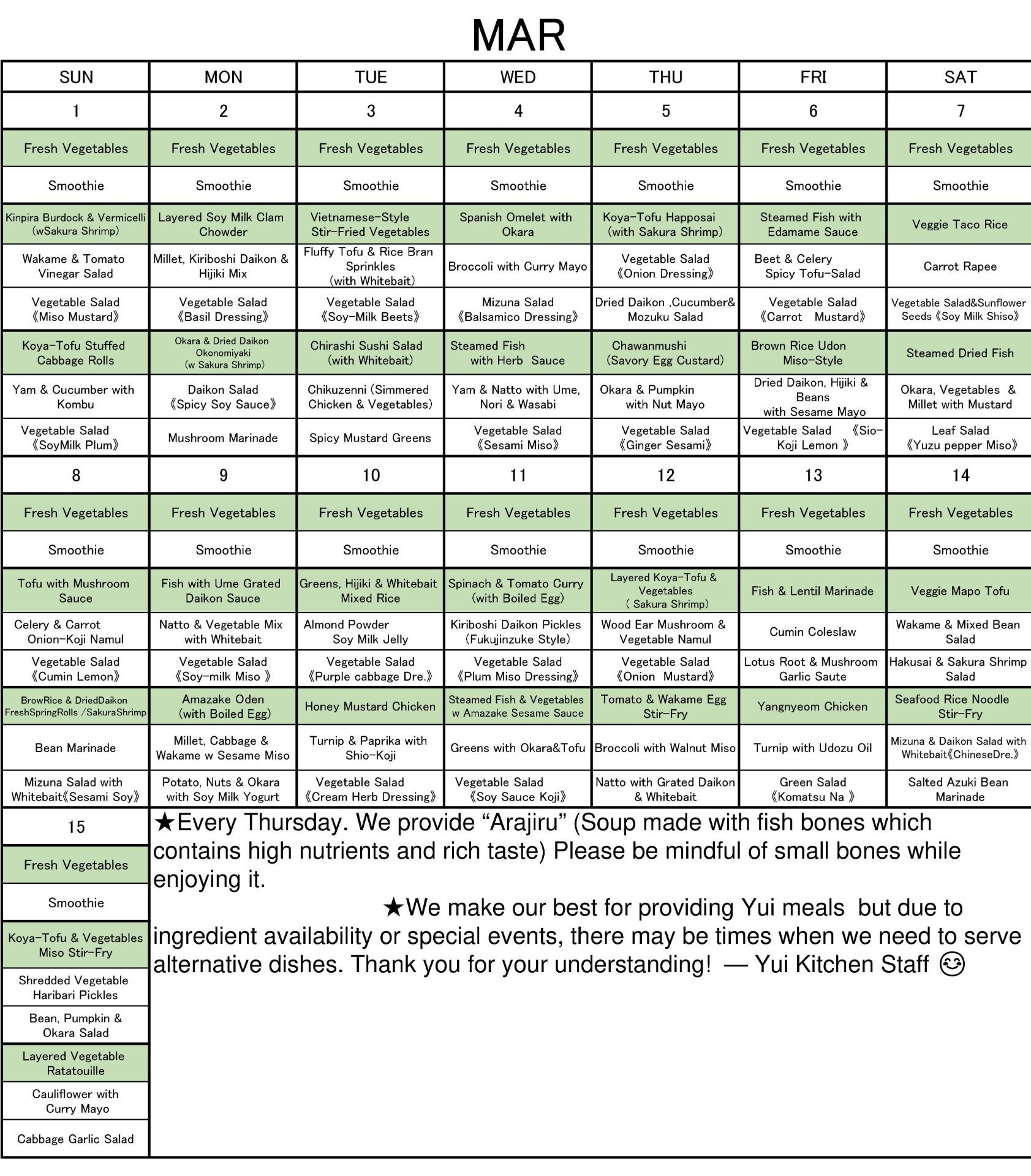HomeEnglish PageInformationfoodYui Clinic Menu in MARCH 2026 Categories: food Yui Clinic Menu in MARCH 2026 Information Posted on 2026.3.17 by Yui Clinic (Okinawa, Japan) Tags: casein free gluten free menu non-sugar organic recipe vegitarian on Sunday, we have vegetarian menu.