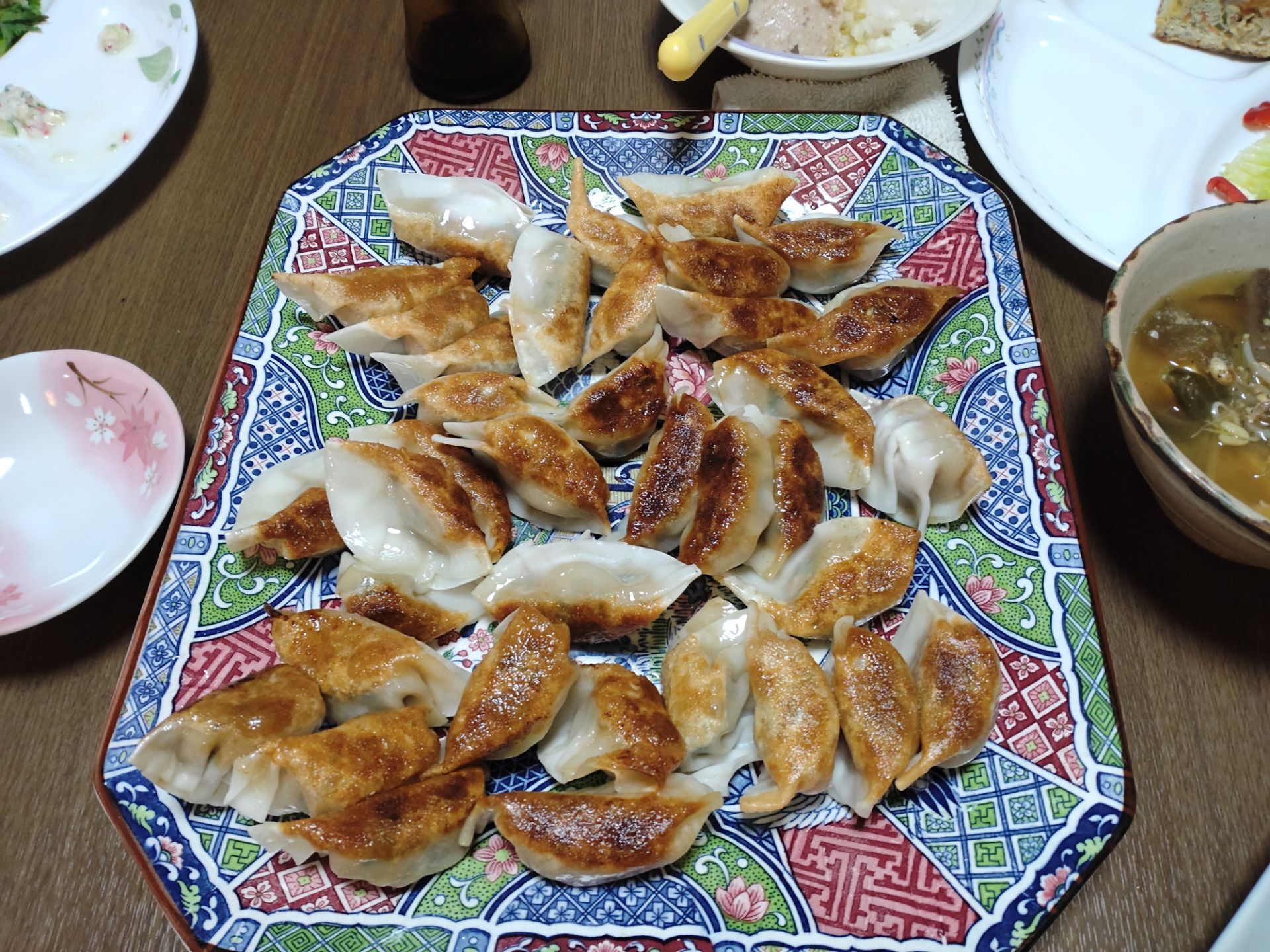 子ども達は餃子が大好きでへたしたら一人で20個以上平気で食べてしまうので、今回も多分80個以上つくったと思います。いつもは餃子だけですが、今回はラーメンもあったのでちょっとだけ餃子は残りました。冷凍して後日食べます。