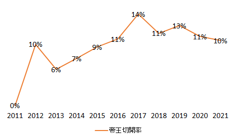 2011年から2021年の10年間で分娩数1800件でした。そのうち帝王切開は185件で、帝王切開率10.3%でした。