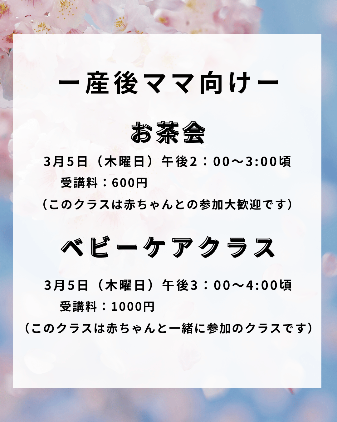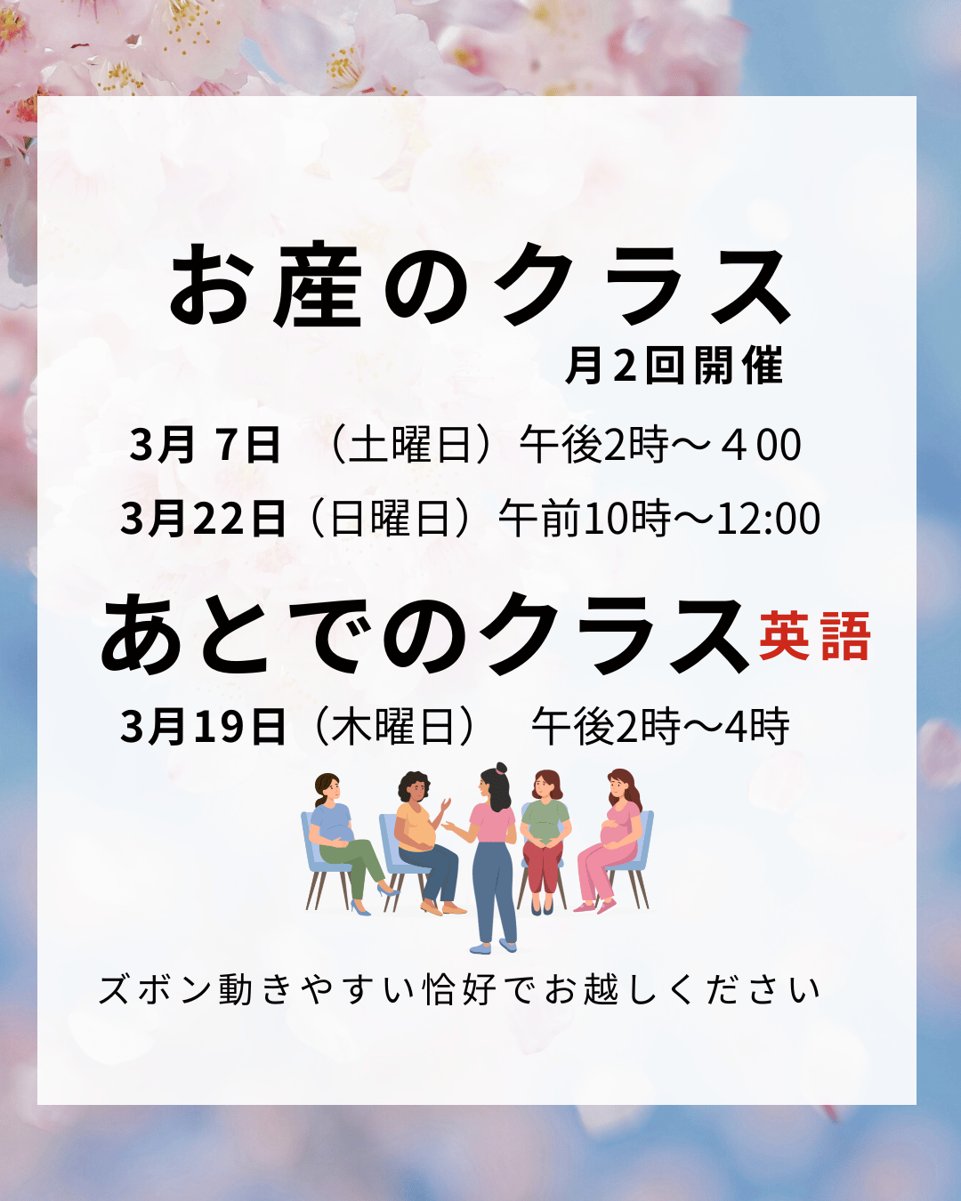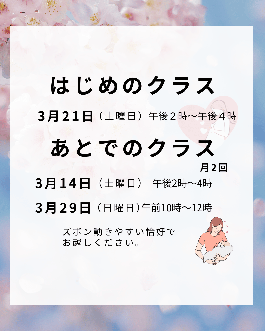 今回は3月のクラスをご案内します。